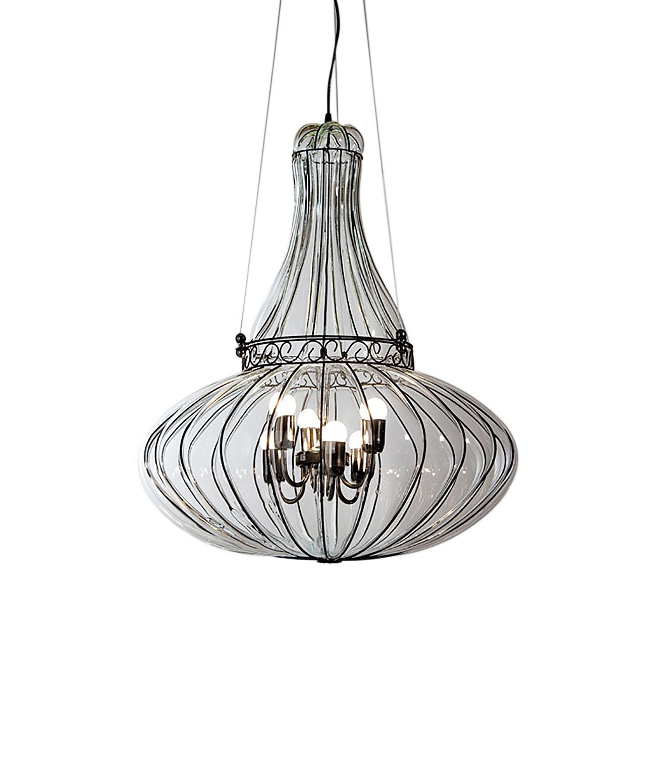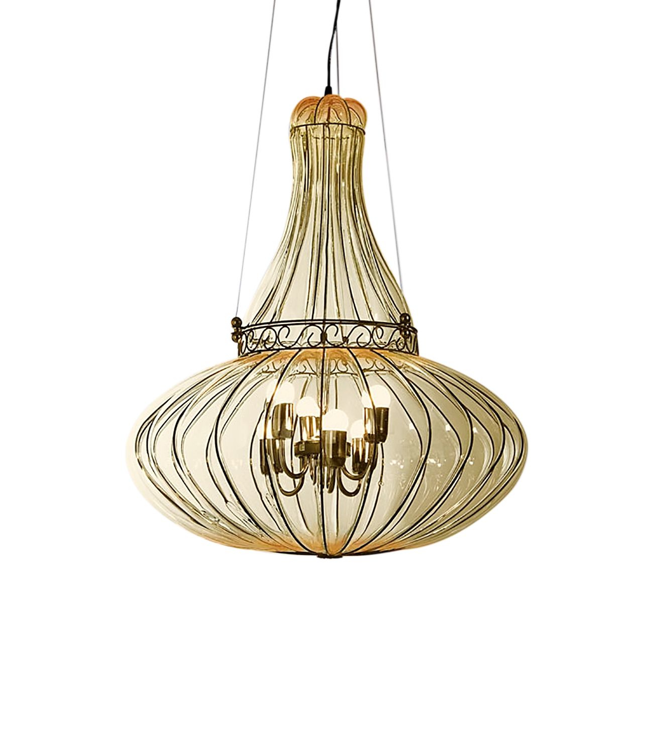 Venetian Cage Chandelier Sultano : authentic and artistic, Venetian Cage Chandelier in Murano Glass, crafted following the technique handed down for generations and exclusively freehand.