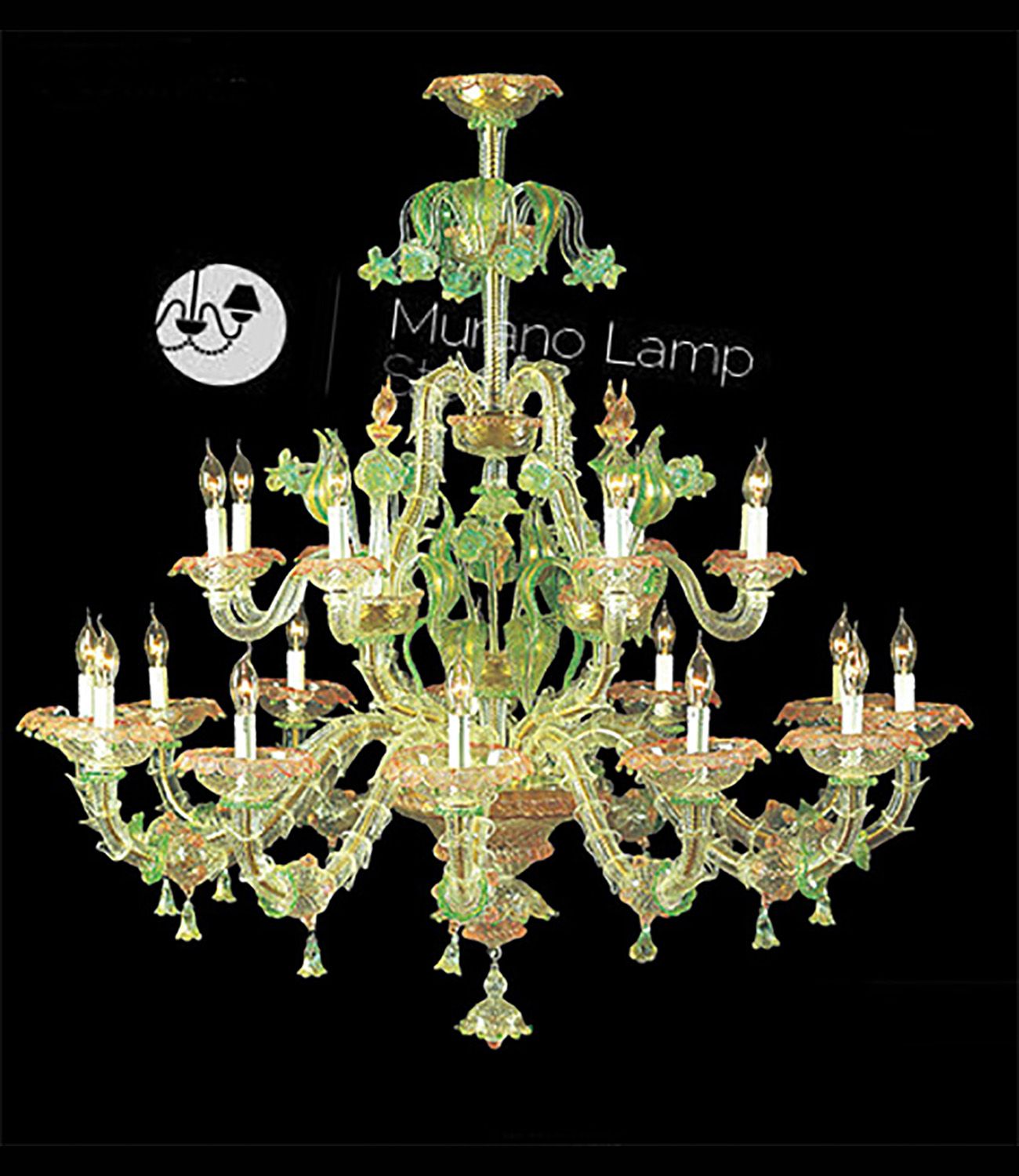 Structured on 3 stages with 6 lights on the first, 3 on the second and 3 on the third. In this very elegant chandelier the details dominate, the “bossole”, the flowers, the leaves and the bells. The environments that are most suited to this type of Venetian chandelier are large spaces with ceilings from which it descends and remains suspended, enhancing all its majesty.