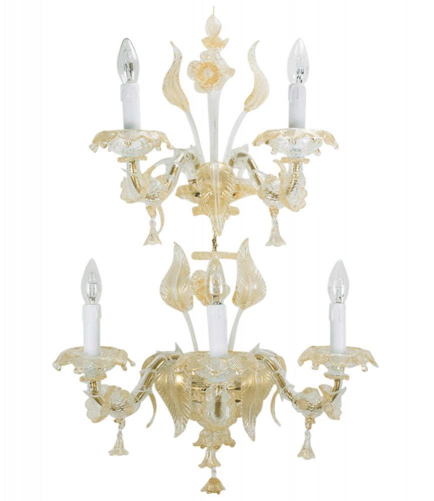 Applique Cà Rezzonico Or : applique authentique et artistique dans le style classique vénitien, réalisée en verre de Murano, travaillée selon la technique transmise de génération en génération et exclusivement à la main.