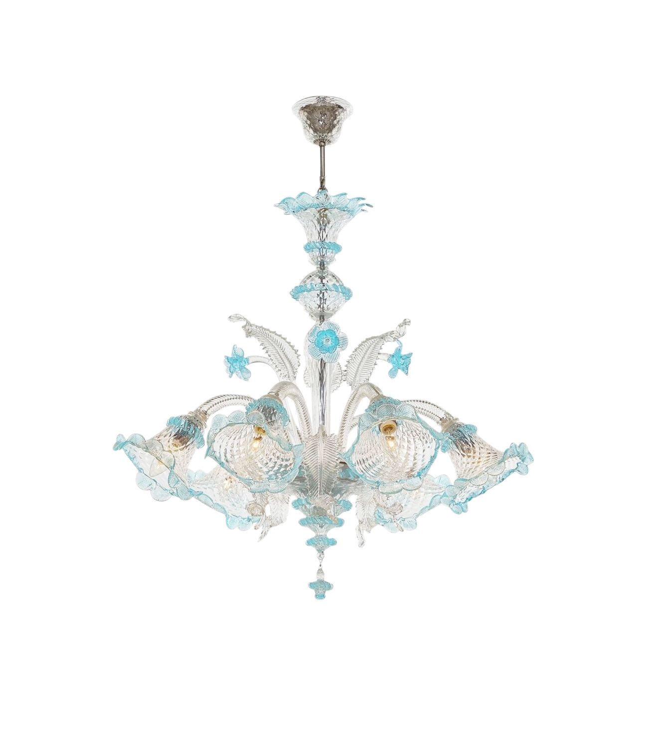 De plus, ce chandelier en murano présente d'autres éléments décoratifs comme la couleur ou l'or 24k, qui mettent en évidence la technique de nos maîtres verriers qui transmettent l'art de père en fils de génération en génération.