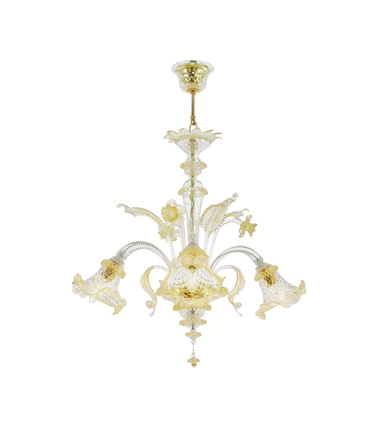 Chandelier Tasses et Triangle : authentique et artistique chandelier classique vénitien en verre de Murano, travaillé selon la technique transmise de génération en génération et exclusivement à main levée.