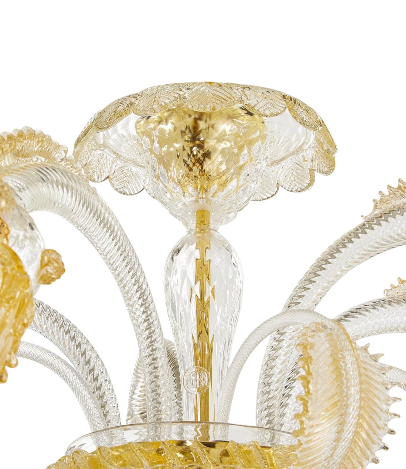 De plus, ce plafonnier présente des éléments décoratifs dans différentes couleurs ou en or 24k, qui mettent davantage en valeur la technique de nos maîtres verriers qui transmettent l'art de père en fils de génération en génération.