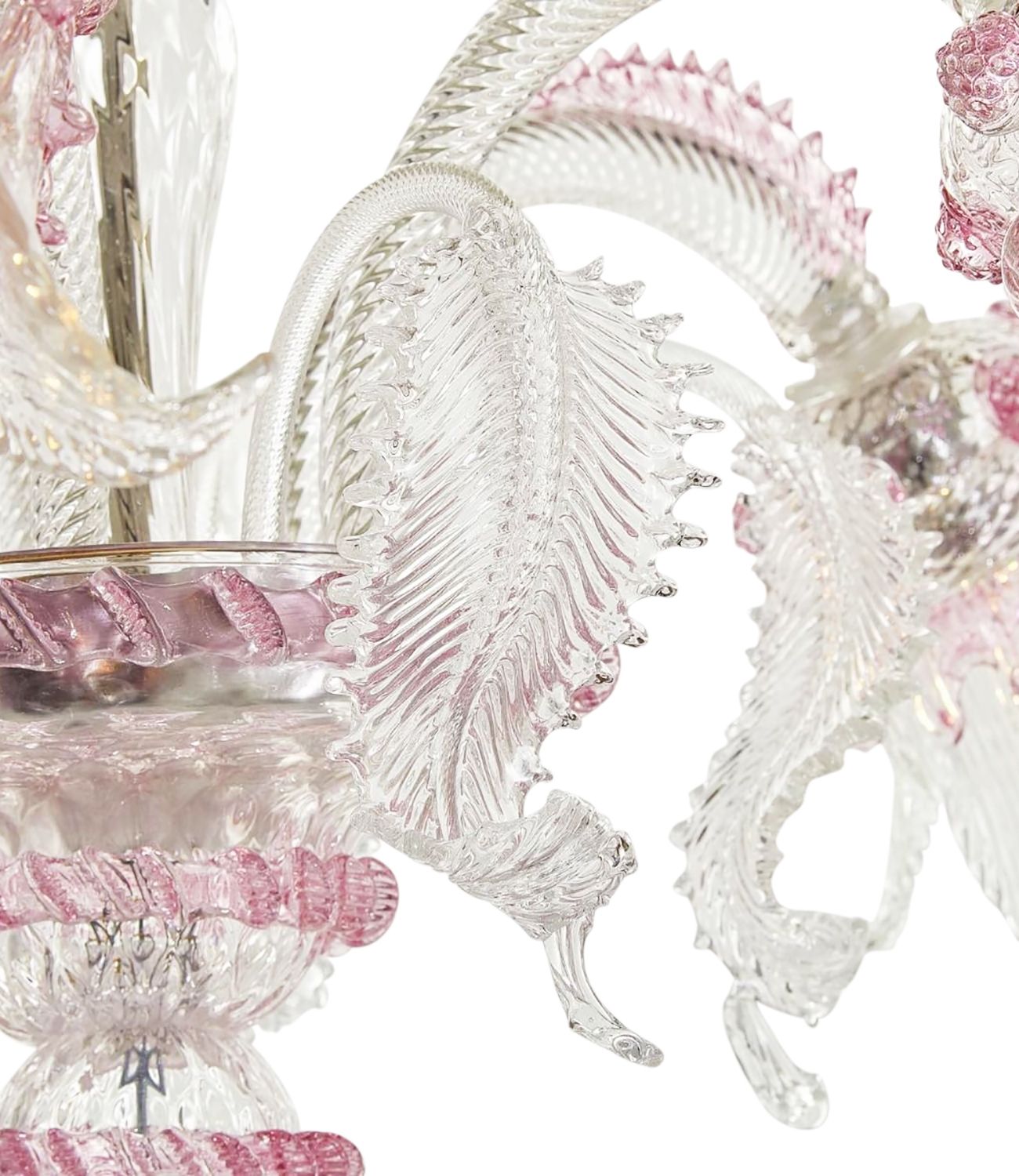 Caractérisé par des fleurs en forme de "Réflecteur Luxe" qui sont réalisées par les maîtres verriers muranais sans utilisation de moules. Embelli par des fleurs et des feuilles, également ces décorations travaillées rigoureusement à la main.