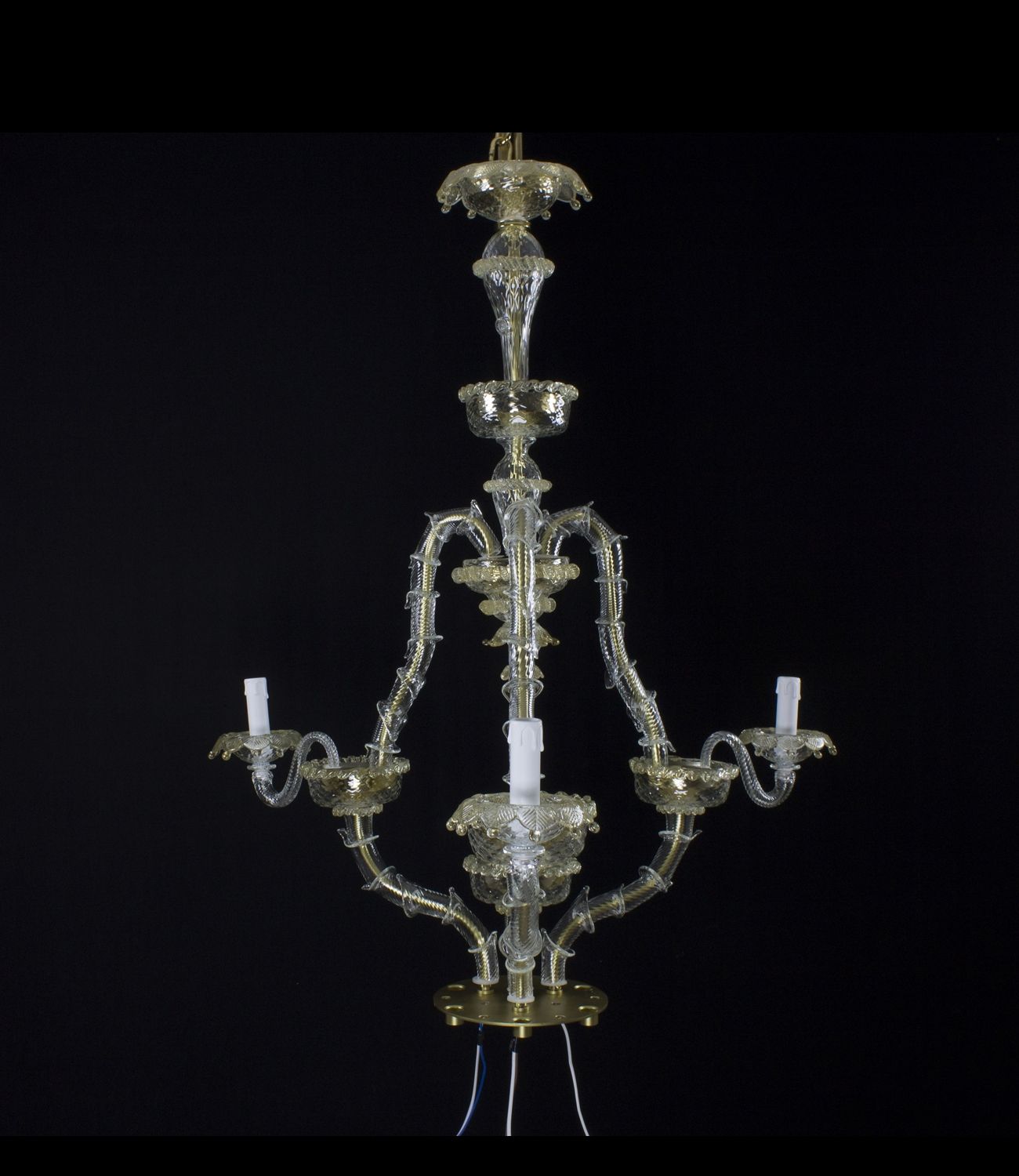 Lampadario Cà Rezzonico Fondaco: autentico ed artistico lampadario rezzonico in stile classico veneziano in Vetro di Murano, lavorato seguendo la tecnica tramandata da generazioni ed esclusivamente a mano libera.