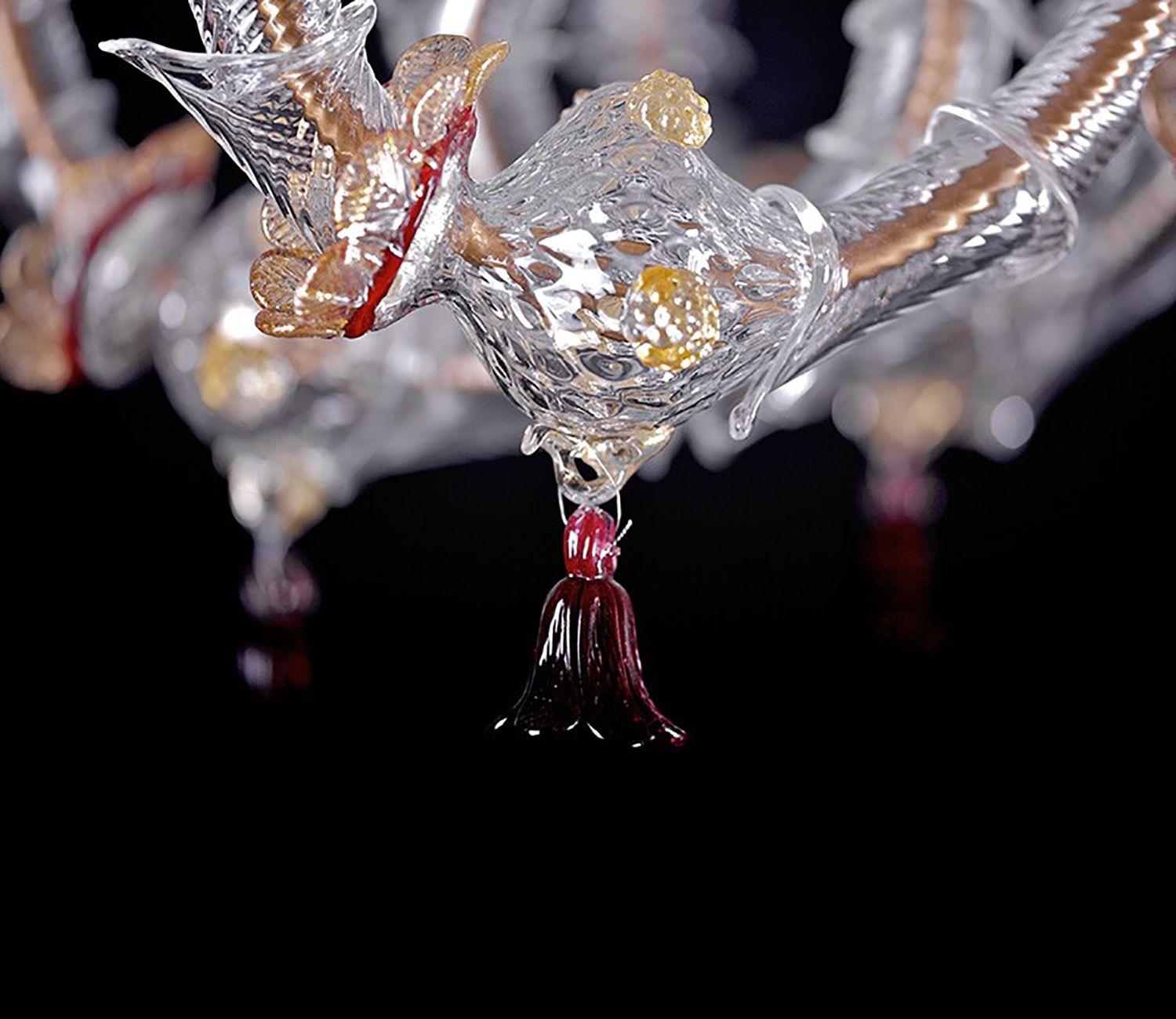 Lampadario Cà Rezzonico Doge: autentico ed artistico lampadario classico veneziano in Vetro di Murano, lavorato seguendo la tecnica tramandata da generazioni ed esclusivamente a mano libera.