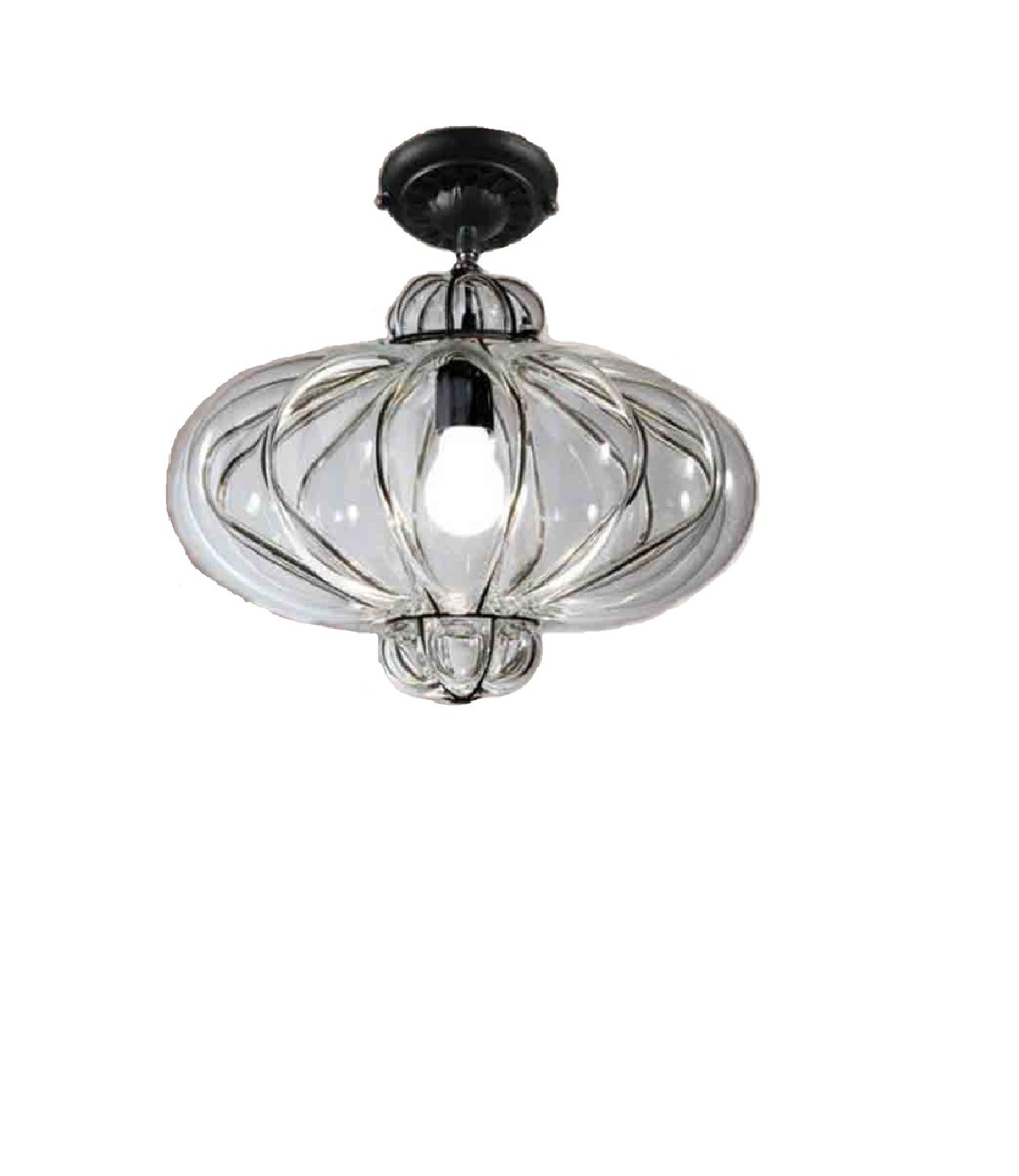 Plafoniera Gabbia Veneziana Sultano S: autentica ed artistica, Plafoniera Gabbia Veneziana in Vetro di Murano, lavorata seguendo la tecnica tramandata da generazioni ed esclusivamente a mano libera.