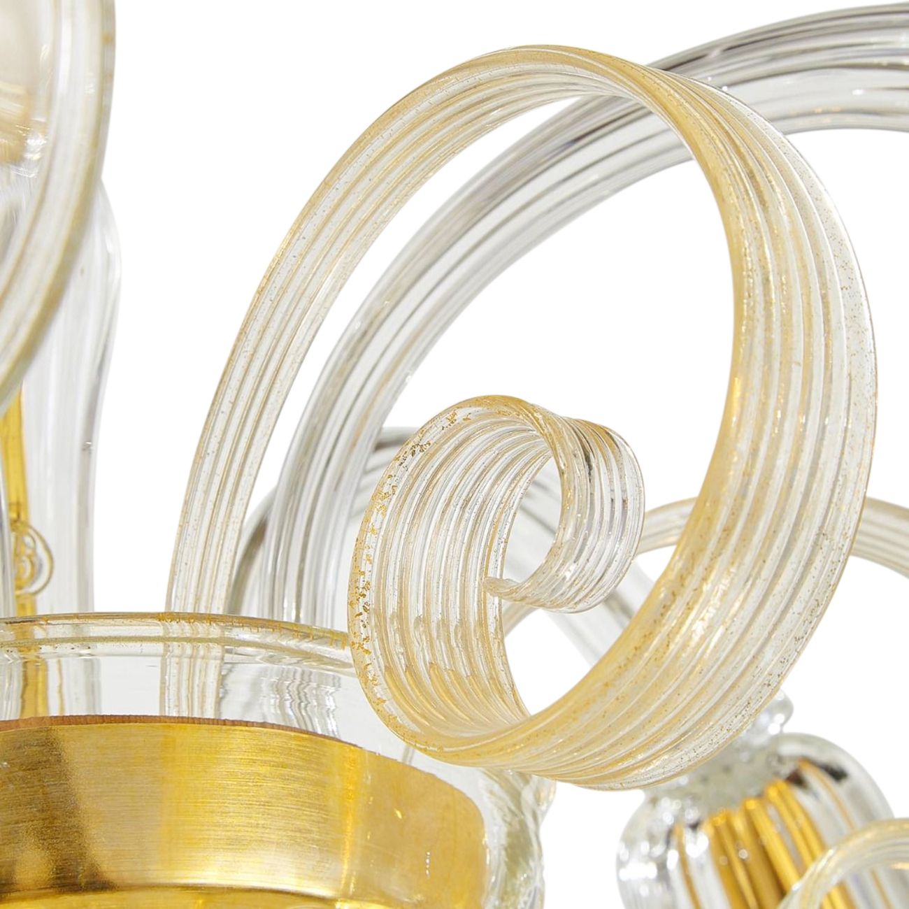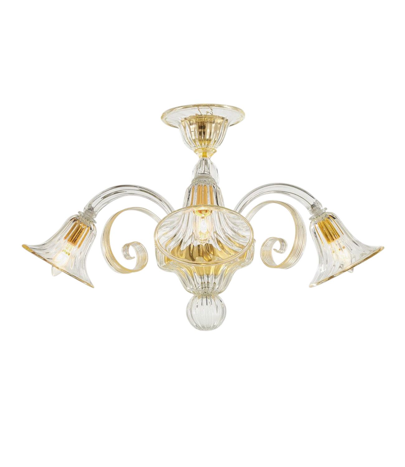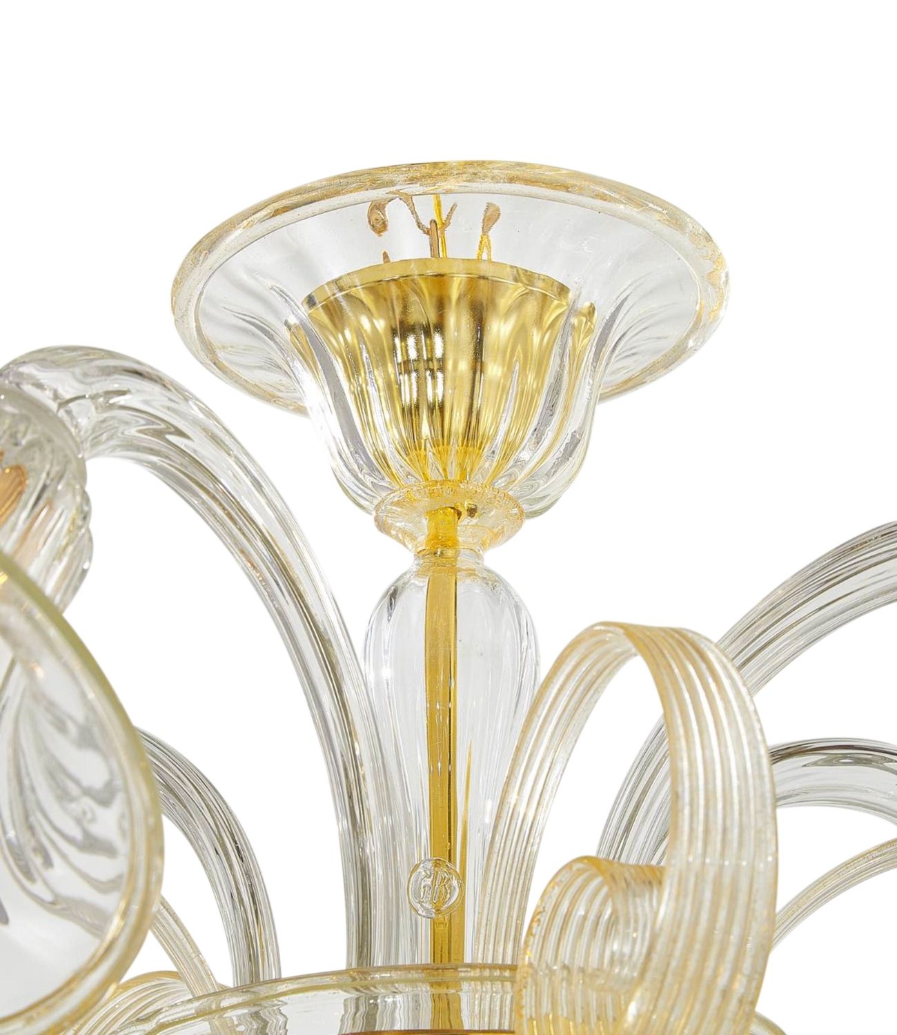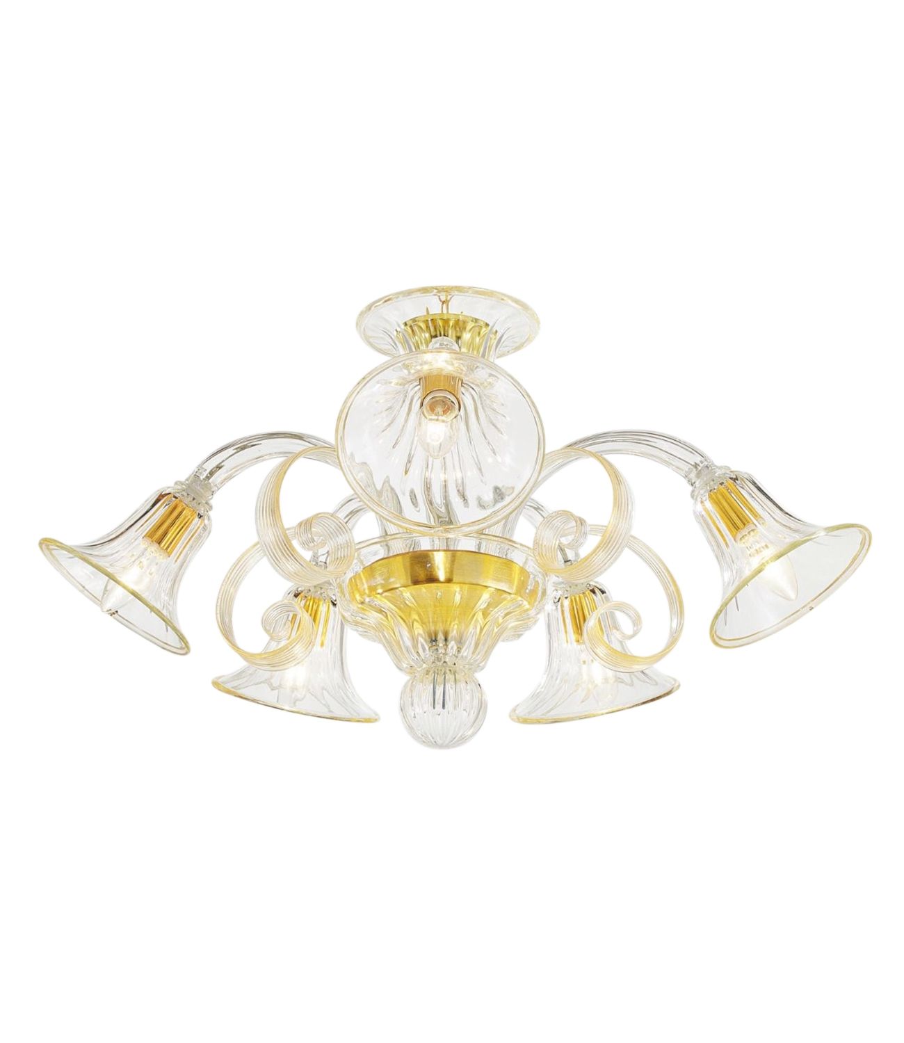 Inoltre, questa plafoniera, presenta gli elementi decorativi in diversi colori o in oro 24k, che danno ulteriore evidenza della tecnica dei nostri maestri vetrai che si tramandano l’arte da padre in figlio da generazione.