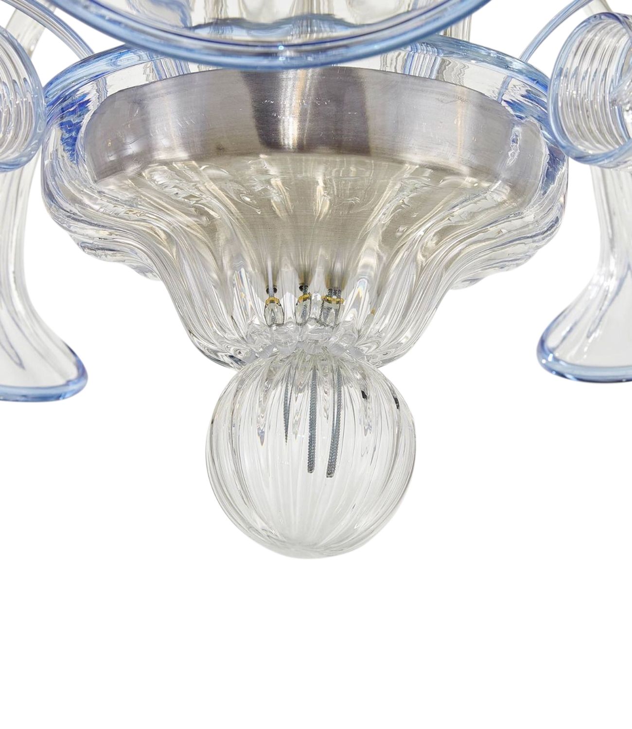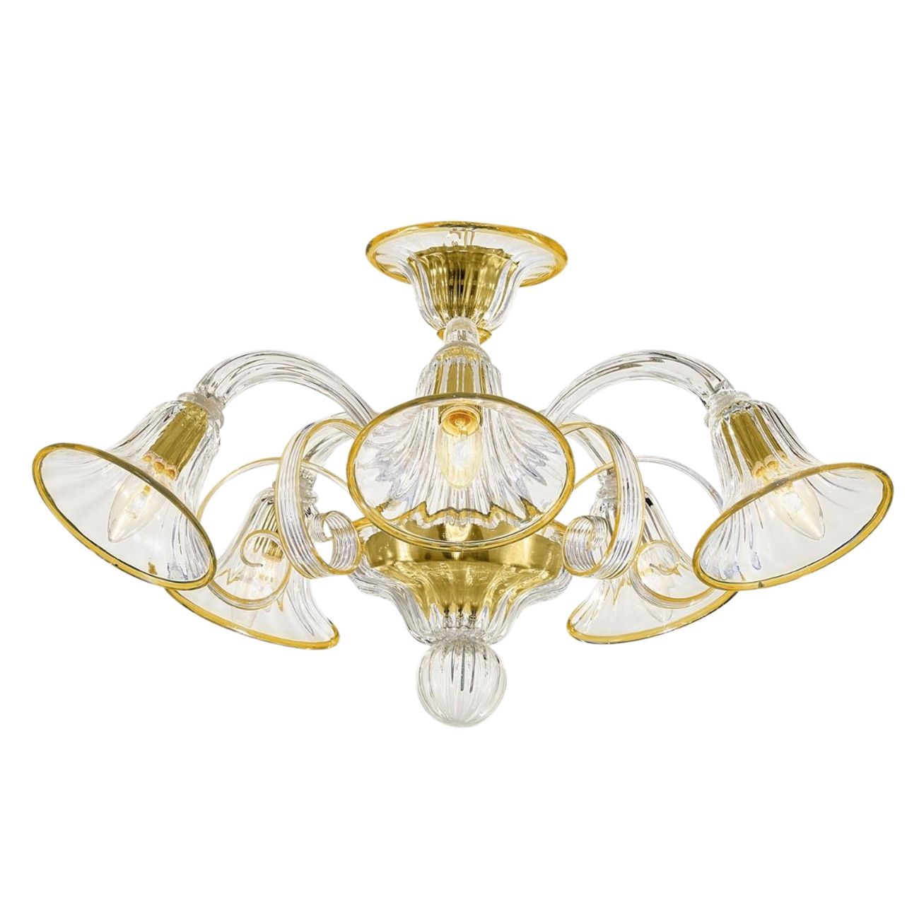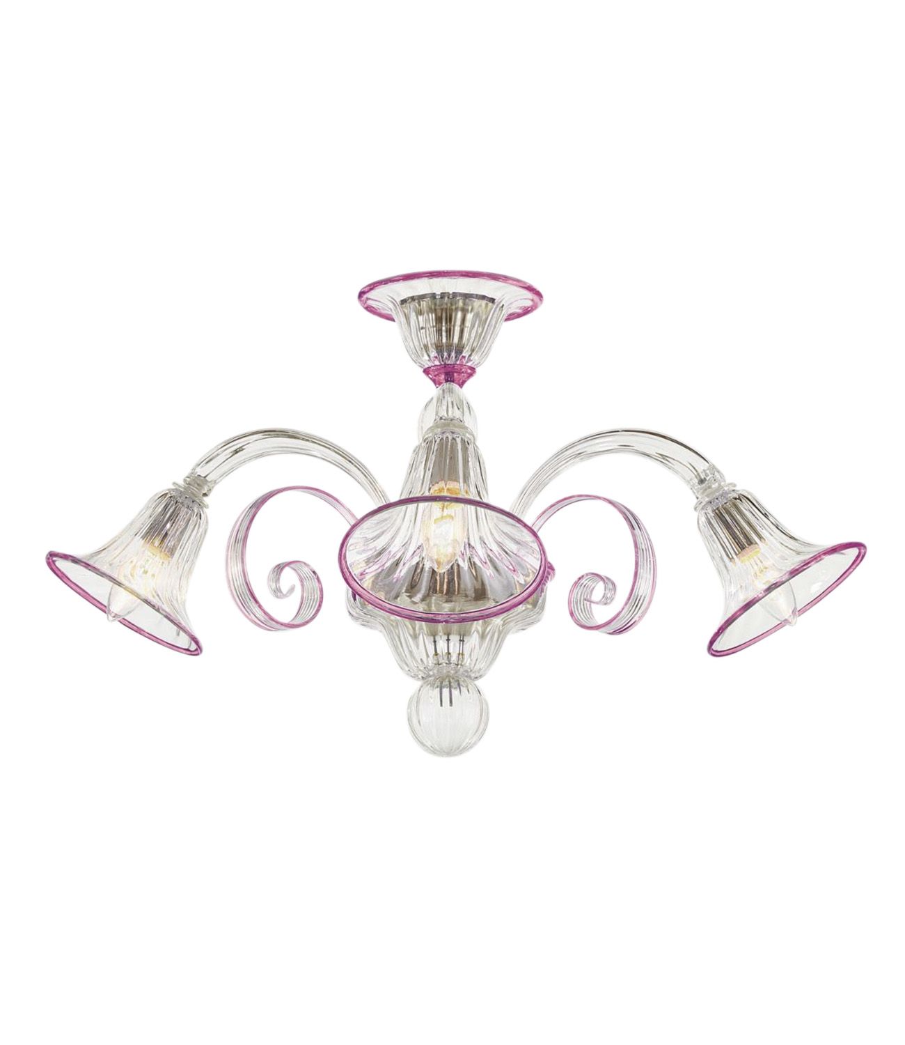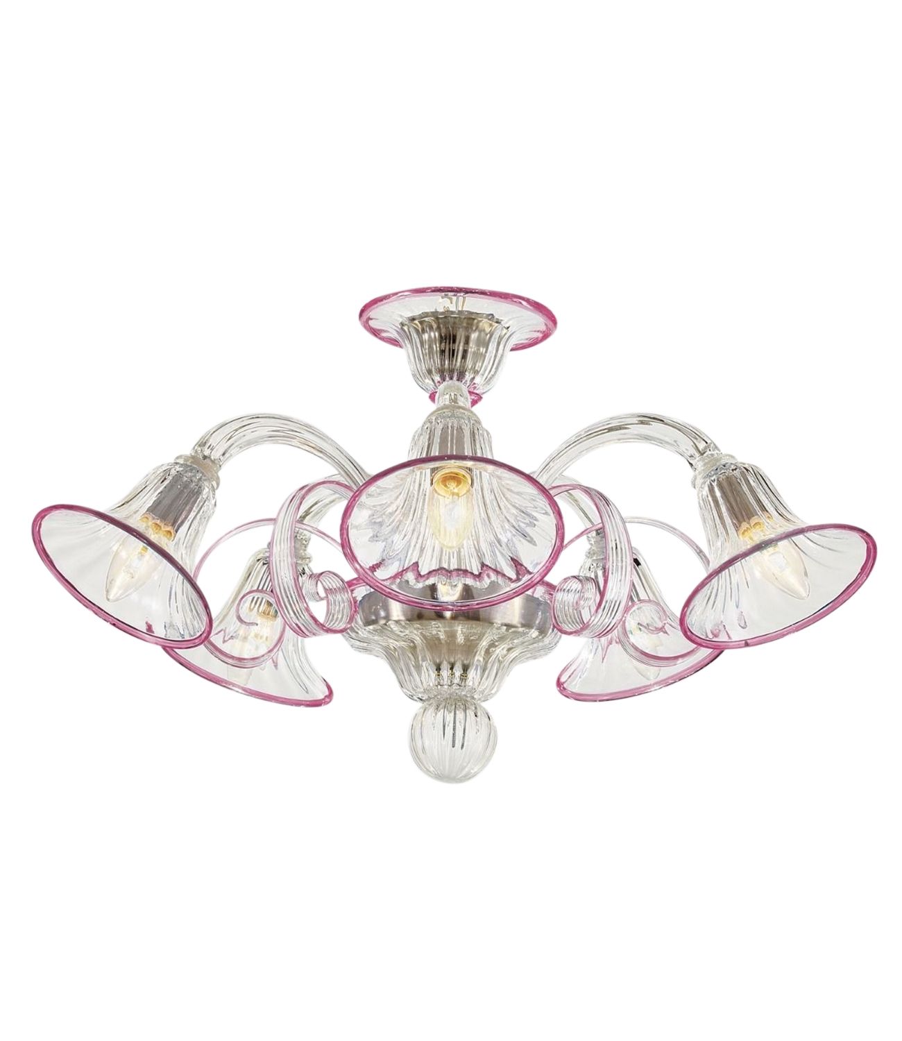 Inoltre, questa plafoniera, presenta gli elementi decorativi in diversi colori o in oro 24k, che danno ulteriore evidenza della tecnica dei nostri maestri vetrai che si tramandano l’arte da padre in figlio da generazione.