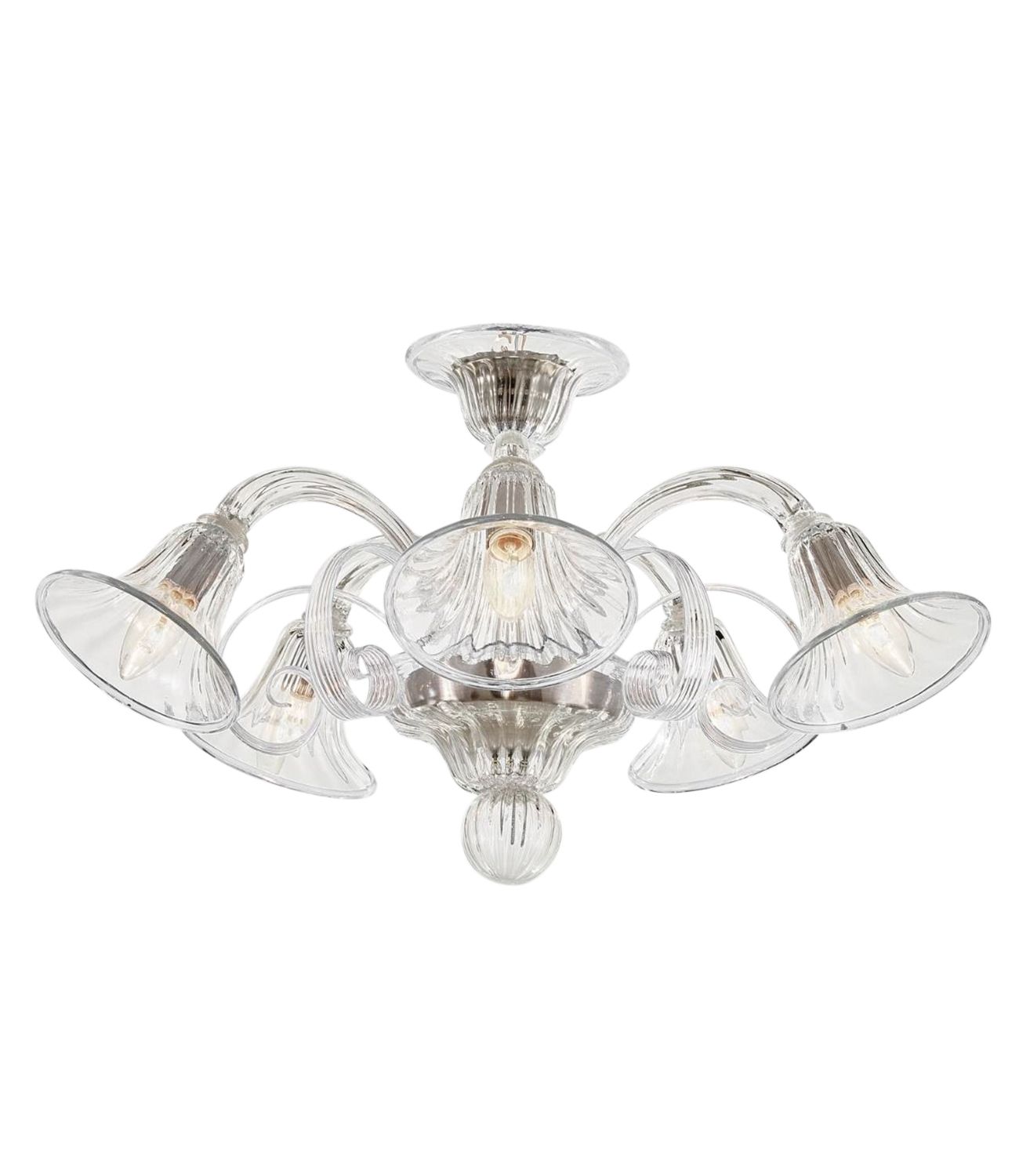 Plafoniera Pulcinella: autentica ed artistica plafoniera in stile classico veneziano, realizzata in Vetro di Murano, lavorato seguendo la tecnica tramandata da generazioni ed esclusivamente a mano libera.