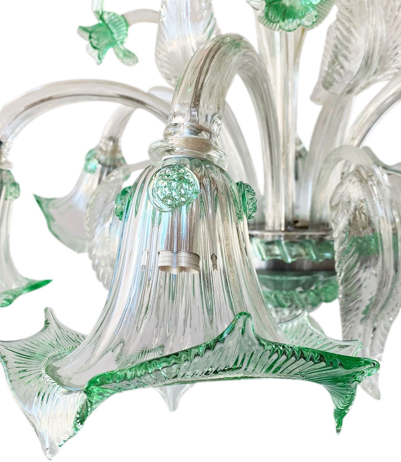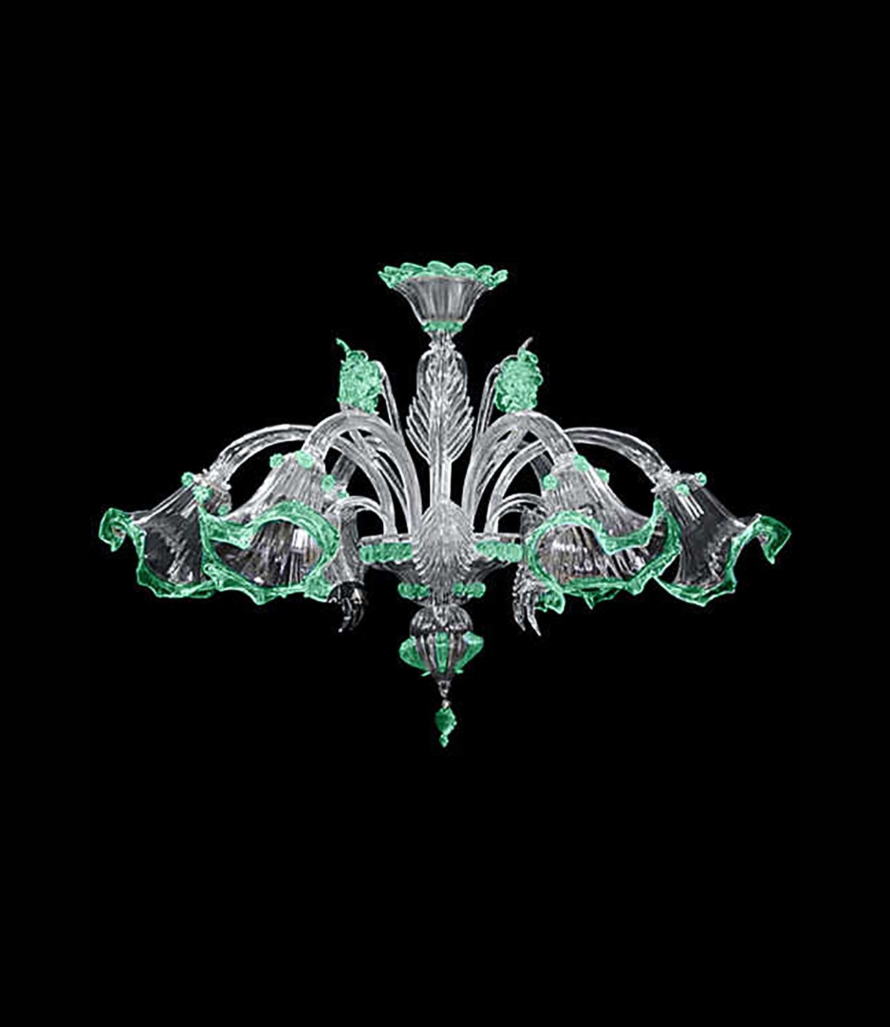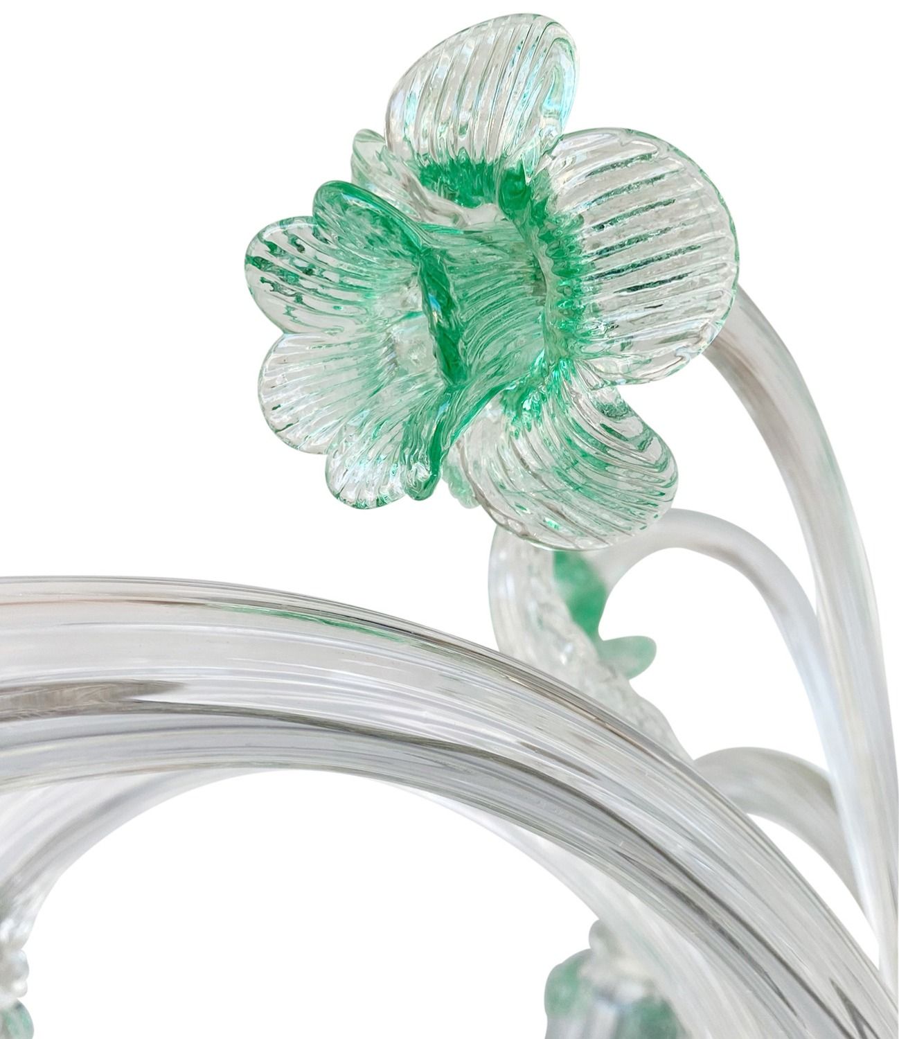Caratterizzato da fiori a forma di "Taglientato" che sono realizzate dai Maestri vetrai muranesi senza uso di stampi. Impreziosito da fiori e foglie, anche queste decorazioni lavorate rigorosamente a mano.