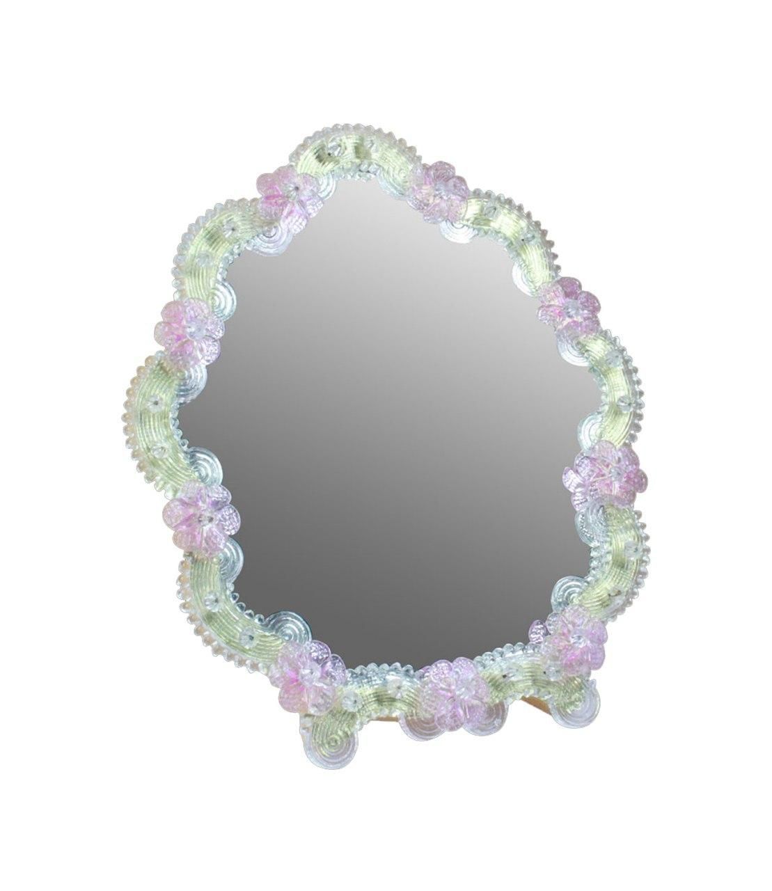 Specchio da tavolo Fioretto : autentico ed artistico specchio in stile classico veneziano in Vetro di Murano, lavorato seguendo la tecnica tramandata da generazioni ed esclusivamente a mano libera.